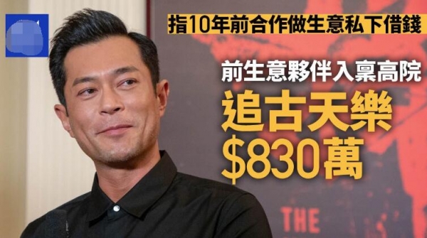 6月12日据港媒报道,古天乐日前被太阳娱乐文化主席唐才智入禀高等法院,向他追讨830万元(港币),2013年及2014年古天乐唐才智曾合作投资公司,该公司经销时装与饮食业务。