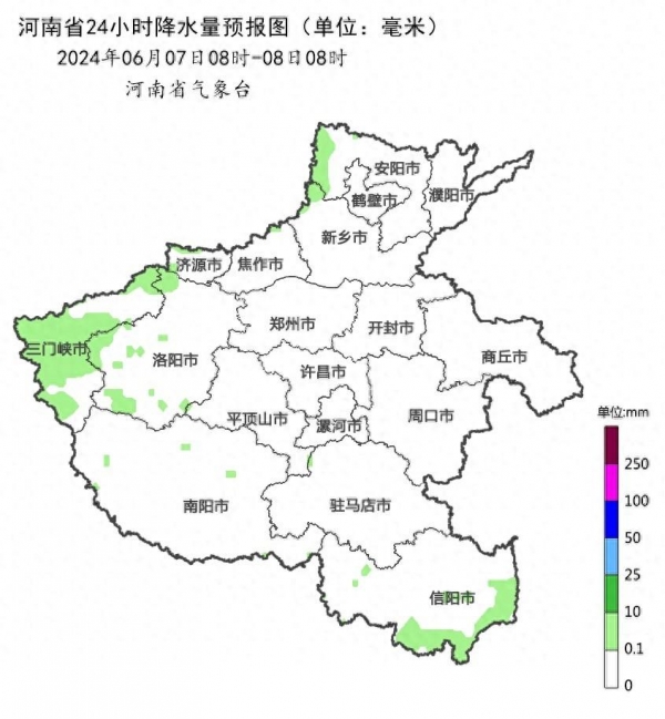今天傍晚到夜里,济源、三门峡、洛阳、南阳、驻马店、信阳多云间阴天,局部有阵雨、雷阵雨;其他县市多云。