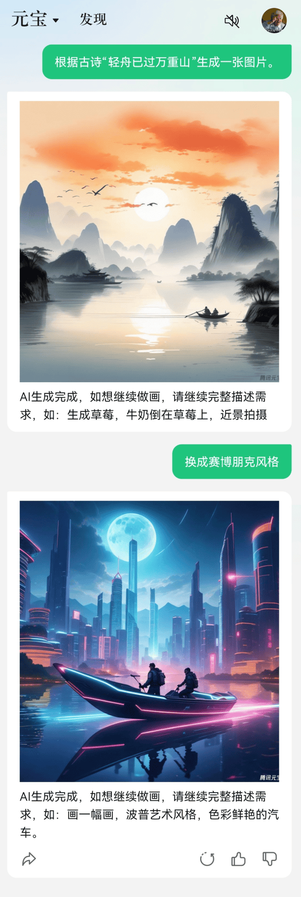 在AI绘画等场景下,"腾讯元宝"也具备了一定的多轮对话能力。
