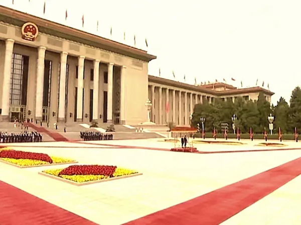 当普京抵达人民大会堂时,中方元首在东门外广场举行了盛大的欢迎仪式,礼炮轰鸣21响,象征着中俄关系的深厚与稳固。