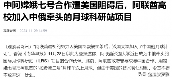 不久前,幕后黑手再一次施加了"遏制力道",阿联酋一直是中国航天事业的重要合作伙伴,双方原本计划在嫦娥七号任务中开展深度合作。