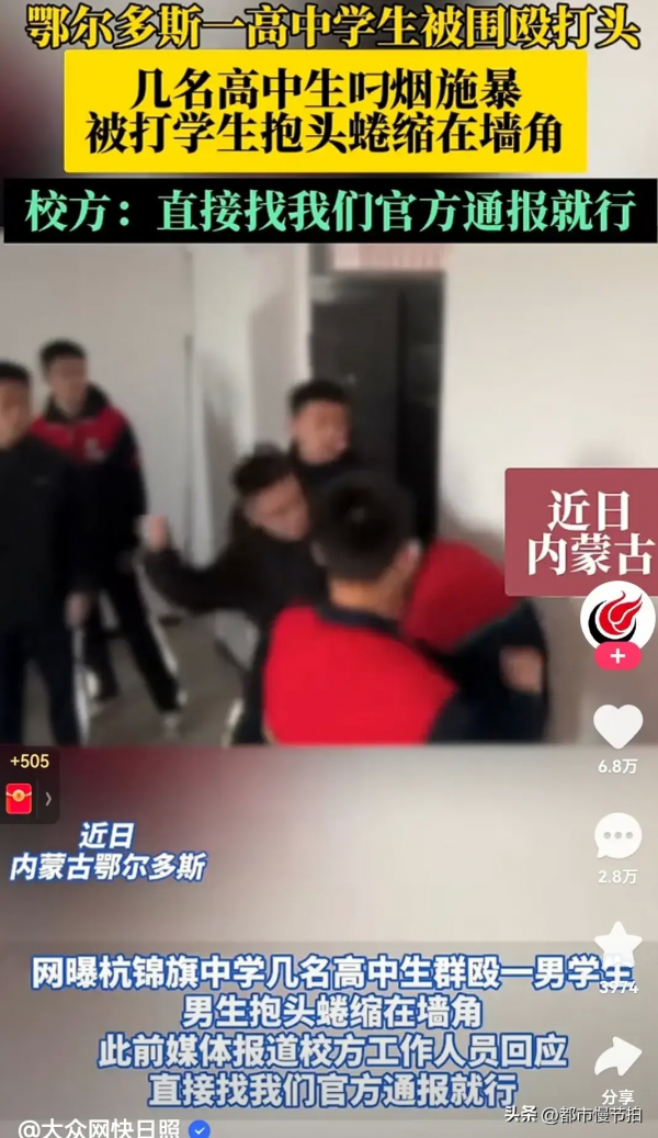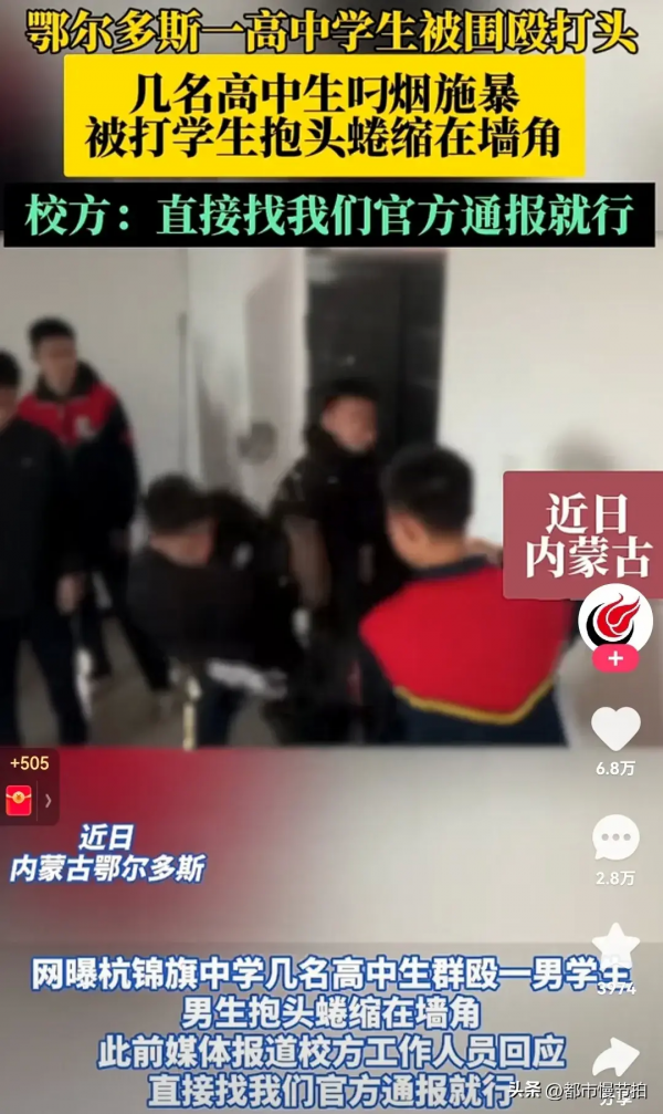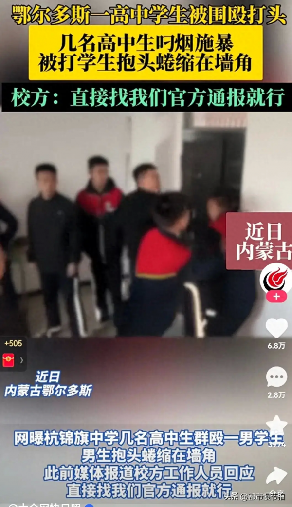 鄂尔多斯一高中学生被围殴,校方:打人学生移交警方处理