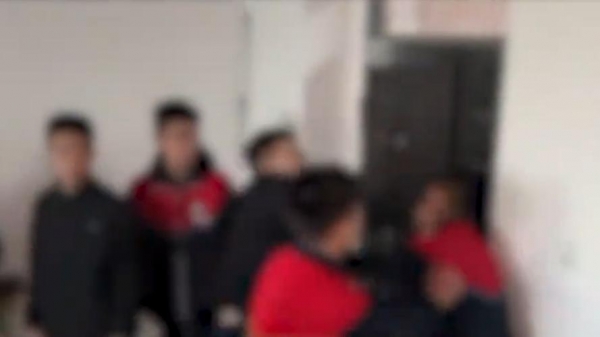 事发鄂尔多斯某中学,视频中几名学生叨着烟,轮番对一名学生拳打脚踢,并多次击打该生的头部,被打学生明显处于弱势,并没有还手之力,被打的蜷缩在墙角。