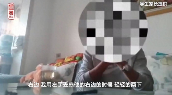 视频中该老师称:"我这样去扇他的脸,有一边我没记错的话是3下还是4下,右边脸只扇了2下,我可以肯定,轻轻的两下,打完之后我也有平复他的心情,说你真的不应该你让老师失望了。"