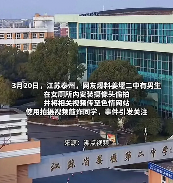 3月20日,江苏泰州,有爆料道姜堰二中有男生在女厕所安装摄像头长达一年。