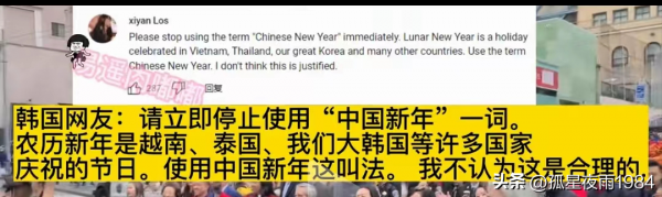 韩国网友说:请立即停止使用"中国新年"一词。农历新年是越南,泰国,韩国等许多国家庆祝的节日,使用中国新年这叫法,我不认为是合理的。