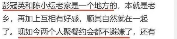 其实二人的关系早在2022年的年中就已经有迹可循了,6月份狗仔曾多次拍到陈小纭与彭冠英共同进餐。