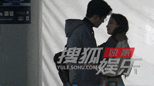 视频中的二人似乎在拍一场机场吻别的戏份,还一连吻了三次。