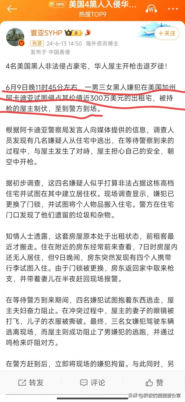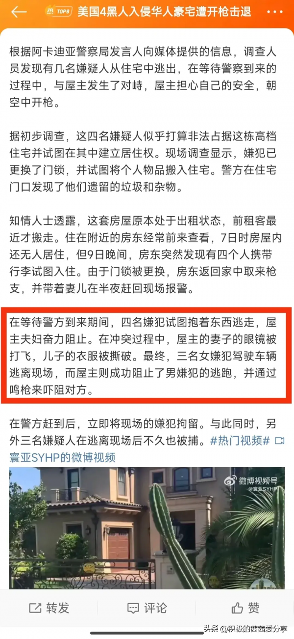 被华人屋主发现后立马报警并拿枪对峙,目前根据报道得知,这4名嫌犯已经全部被捕,现场也没有人员受伤!