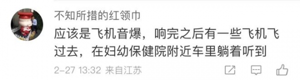 记者了解到,市公安局、消防大队、应急管理局等相关部门并未接到此类警情,同时开展实地排查,并未发现爆炸情况。排除了地震、爆炸等可能性,结合网友听到飞机飞过这一情况,这声巨响可能是音爆。