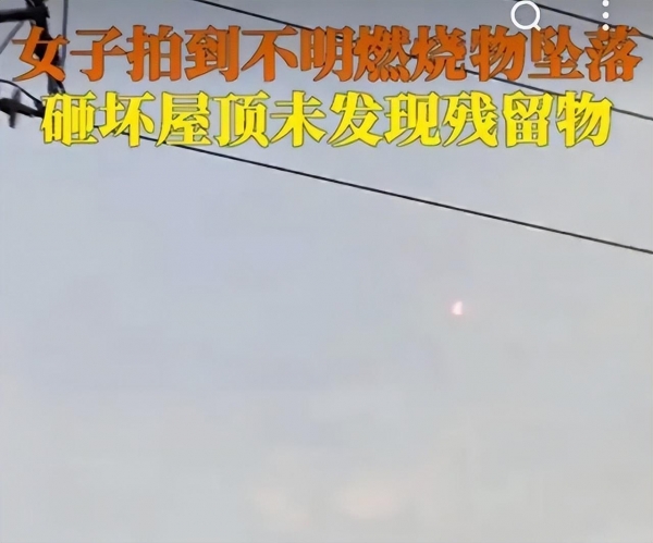 浙江舟山,一名女子正在拍视频,结果无意中拍到了一个不明燃烧物从天而降的瞬间。