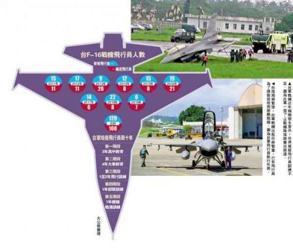 台军F-16V战机飞行员人数 图片来源香港《大公报》