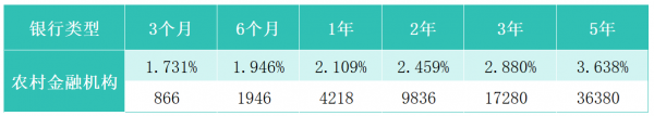 像农村信用社,农村合作银行这些都属于农村金融机构,规模小、网点少,这类银行的大额存单平均利率分别为:3个月1.731%、6个月1.946%、1年期2.109%、2年期2.459%、3年期2.88%、5年期3.638%。