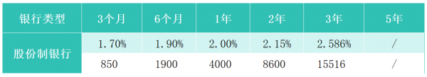 和国有银行不同的是随着净息差压力越来越大,股份制银行的大额存单产品5年期已经停发,其5个存期的利率分别为:3个月1.7%、6个月1.9%、1年期2%、2年期2.15%、3年期2.586%。