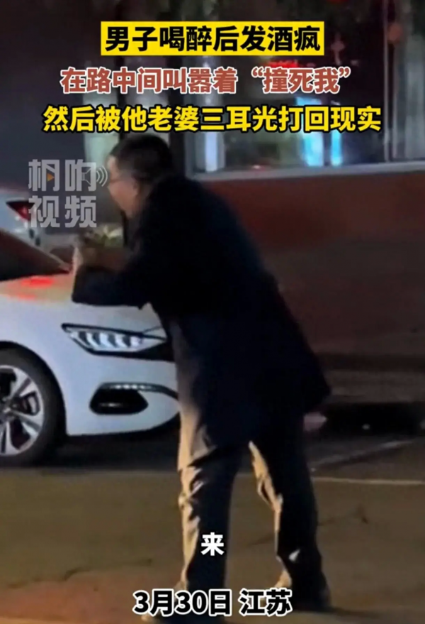 最近网上传得火热的一段视频真是让人哭笑不得啊!说是有位大哥喝酒喝高了,在大马路上跟个疯子似的,大喊大叫,还冲着过往车辆嚷嚷"撞死我"!好在啊,他老婆及时赶到,几记耳光下去,就把他这"酒疯"给打醒了,也免得惹出更大的麻烦。