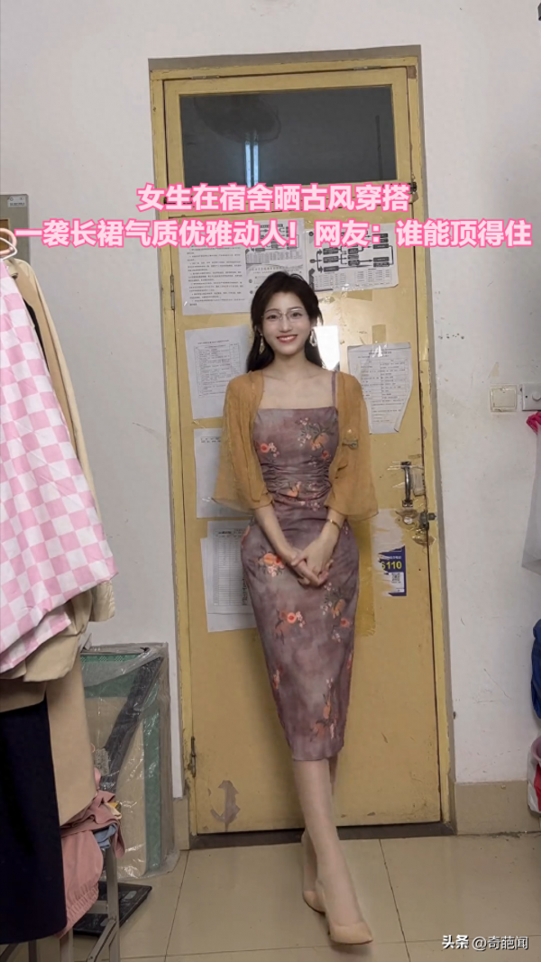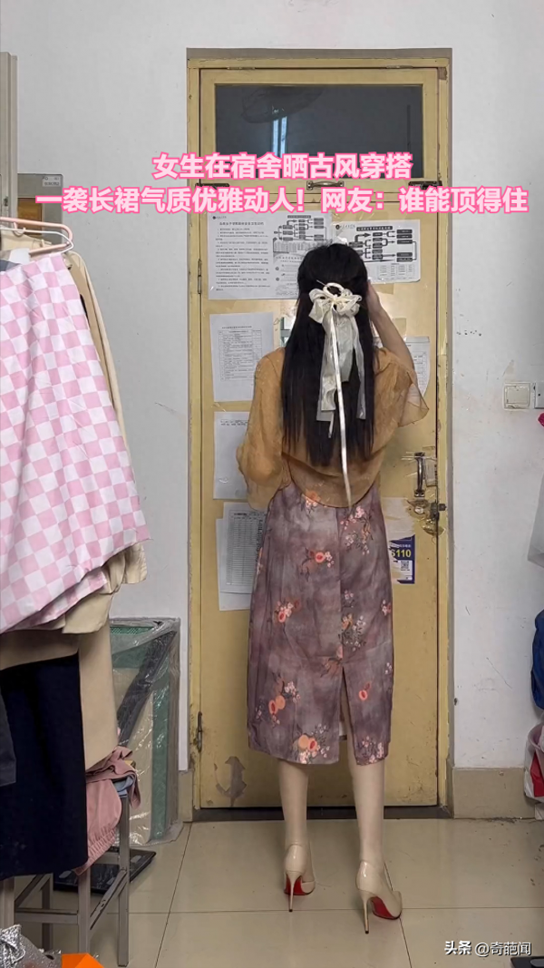 山东济南有网友在某社交平台上分享了一段女生在宿舍里晒自己的古风穿搭,众多网友都被她那一袭优雅的长裙浑身散发出迷人的气质所吸引,一时间走红网络。