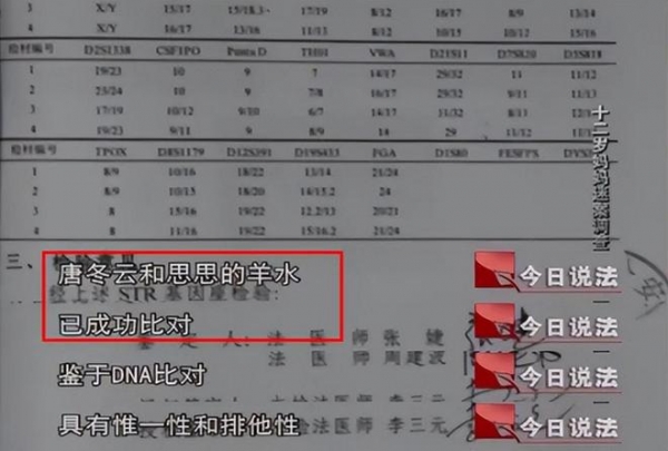 经过腹中婴儿的羊水比对,证实了孩子是老人唐冬云的!