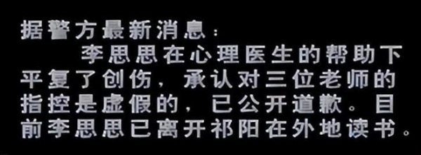 李思思也在心理老师的帮助下,坦白三位老师并未对她做过什么!