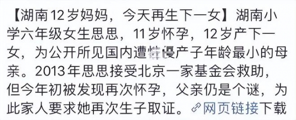 12岁零3个月的李思思就这样成了全网年龄最小的妈妈!