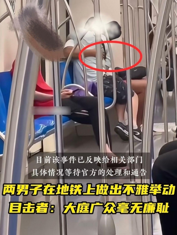 当时的乘客录下了视频,画面中显示他们二人坐在地铁的一边的座位上,一名男子紧紧的搂抱着另一人,两人应该是在接吻,其中一人的手正在另一个人的背上抚摸,甚至掀起了衣服,看样子是已经深深沉浸了。