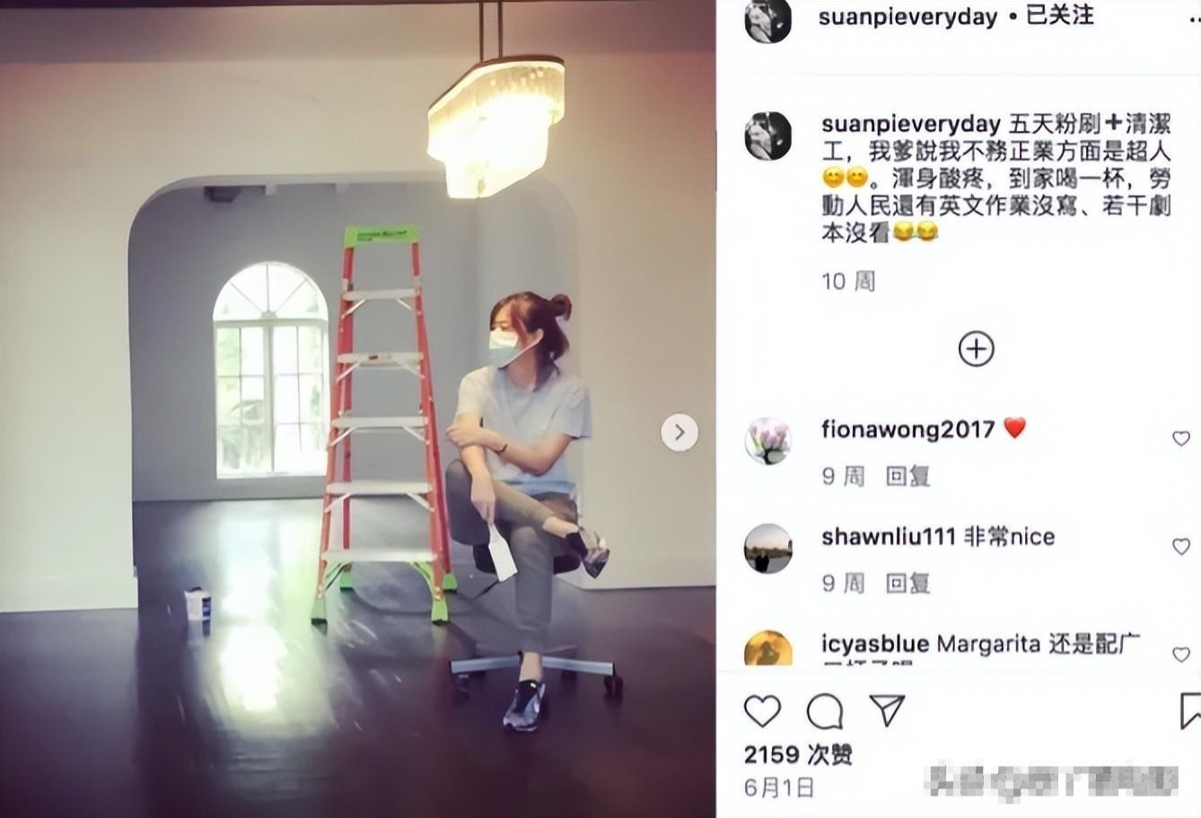 她还给自家新房粉刷、做清洁……翘着二郎腿的样子,充满青春感。