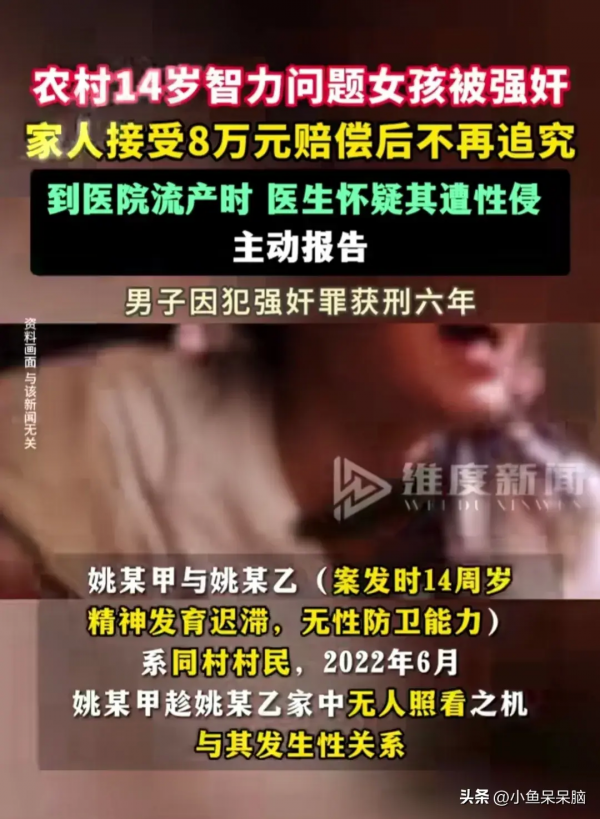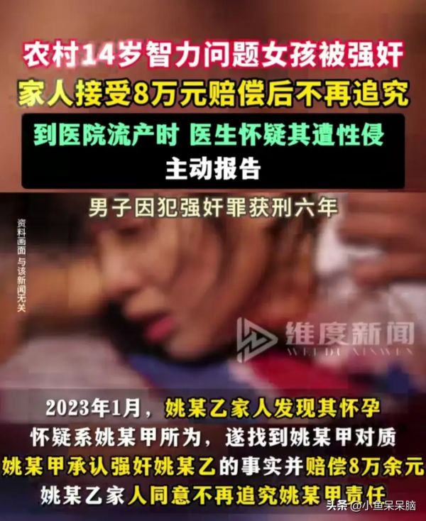 小姚智力有点儿特殊,平时不太会表达。爸妈发现小姚怀孕,就猜测是村里的村里的姚某(同姓),原来是他趁家里没人,仗着女孩没有性防卫能力,将其性侵了。这事儿,太让人气愤!面对家长的质问,姚某也丝毫不避讳,承认了事实,还给了8万块钱赔偿款。家长呢,见他给了钱,就同意不再追究他的责任了!