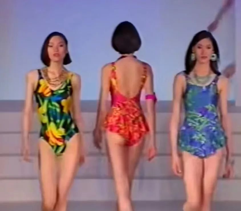 比基尼的流行风尚也刮到了内地。1996年首届内衣展览会出现了泳装专场,分体式、高腰式作为当时的主流,特别修饰身材线条。