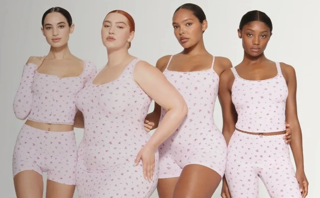 其中,最为出圈的当属金·卡戴珊的个人品牌SKIMS。所有女孩儿都能在这里找到适合自己码数和肤色的内衣套装、泳衣套装,女孩无需为身材而自卑,因为自己生而美丽。