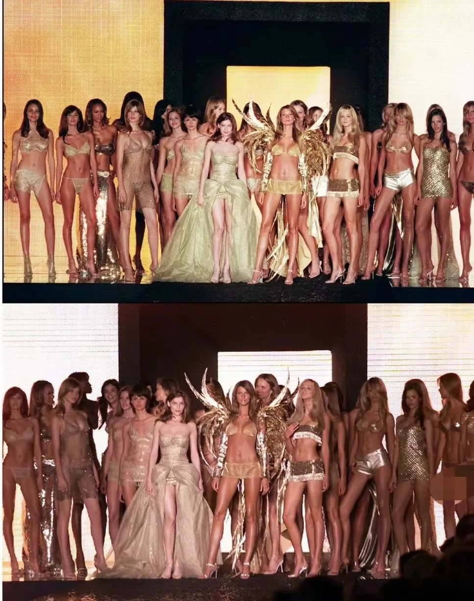 千禧年前后,维密秀引领性感风潮,让比基尼流行愈演愈烈。低腰风靡全球,欧美吊带改得更细,布料更少,人们对比基尼的包容更高,辣妹风应运而生。