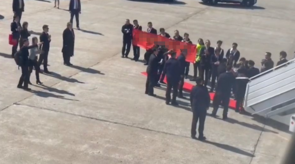 据悉,蔡英文搭乘的飞机飞抵美国当地机场后,其在下机时根本没有任何的美方官员到场接机,只有所谓的"台湾驻美机构"人员在现场迎接。不仅如此,更滑稽的地方在于,为了显示出蔡英文"不一般的身份",在美方没有举行任何正式欢迎仪式的情况下,蔡英文一行人和迎接她的"台湾驻美机构"人员还得自铺红地毯。只不过,这红地毯的尺寸显然很有几分寒酸,根本走不了两步路,纯粹就是个作秀的背景工具……