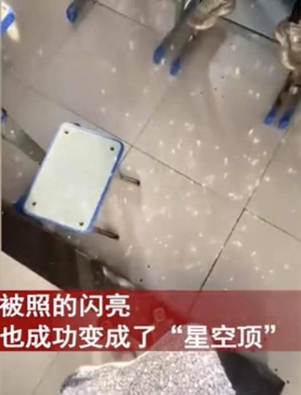 近日一名年轻女老师穿着满是亮片的裙子,去给同学们上课,没想到,亮片被阳光照射后,纷纷反射到教室里,屋顶上,到处星光闪闪,房顶也变成了美轮美奂的星光顶,同学们都看懵了。