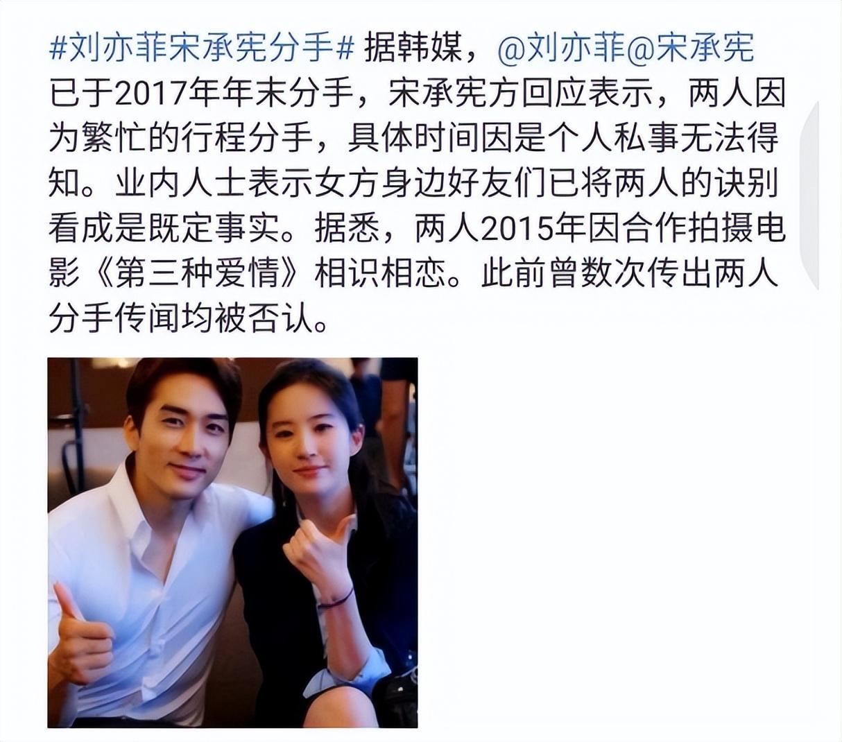 后来刘亦菲和韩国知名影星宋承宪因戏生情,两人在银幕上的互动引起了广泛关注。