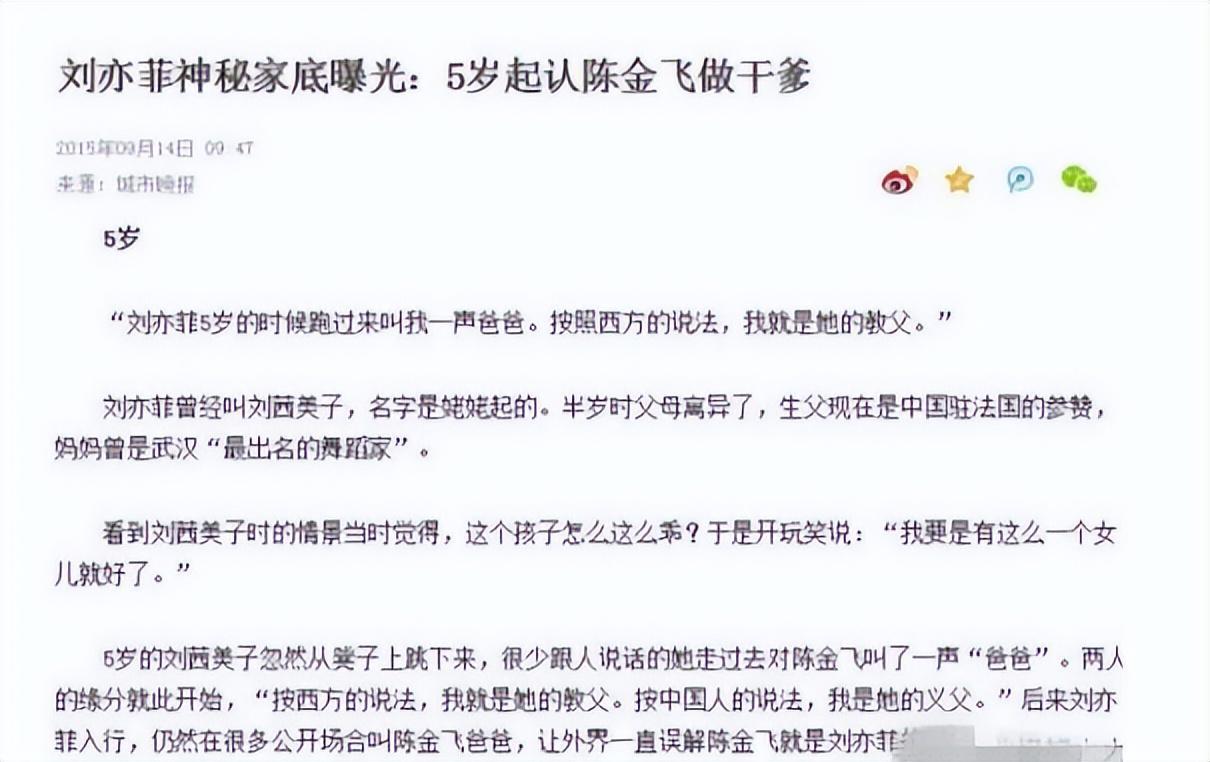 在一次偶然的机会中,陈金飞见到了小时候的"刘亦菲",那时候也就才几岁,并不懂事,见到陈金飞以为是父亲,就亲切地称呼他为"爸爸"。
