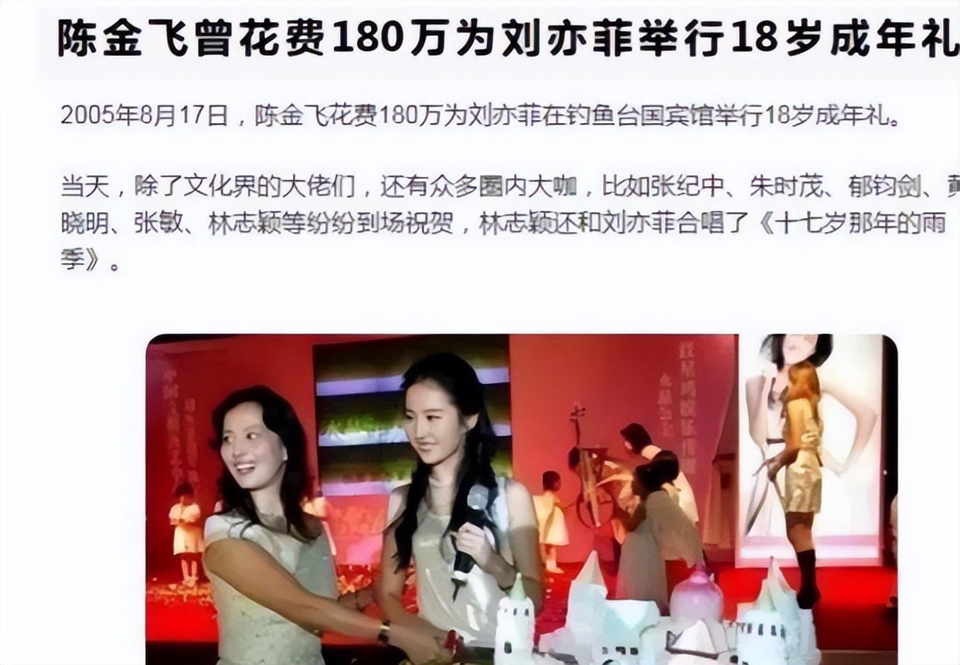 在刘亦菲18岁生日那天,陈金飞更是斥巨资为她举办了一场盛大的成人礼。