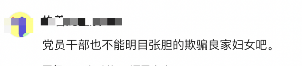 "党员干部不能这么明目张胆的欺骗良家妇女吧。"