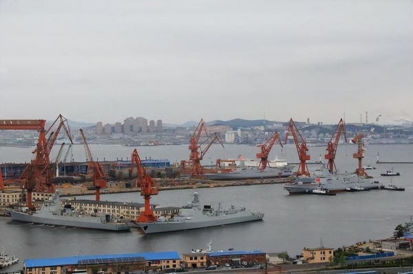 而在2018年,英国媒体同样出现了中国造船厂同时大批建造海军舰艇的报道,披露的商业卫星照片显示,我国大连造船厂当时同时建造了3艘055型驱逐舰以及3艘052D驱逐舰。