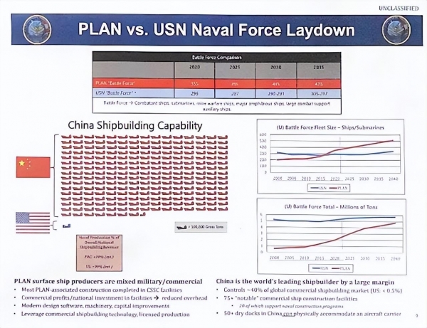 去年,美国海军情报部门给白宫提交了一份关于中国造船业的PPT,其中提到中国如今的造船能力已经是美国的200多倍。