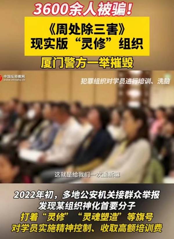 目前,已有3600余人被骗!有网友称:这可是电影【周处除三害】现实版'灵修'组织。