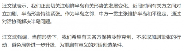 朝方暂时没有发表评论,中方则对此表态称,希望有关各方保持冷静克制,避免局势进一步升级。