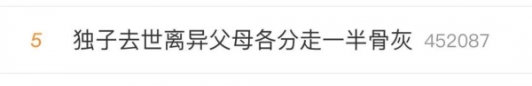 近日一对已经离异的男女因为独子病逝两人的矛盾达到了顶峰,甚至将儿子的骨灰一分为二各自保管,随后#独子去世离异父母各分走一半骨灰#的话题登上热搜,引发热议。