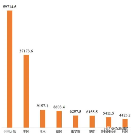 在工业规模上,超过第二名美国接近两倍,比第三名和第十名的总和还要多。