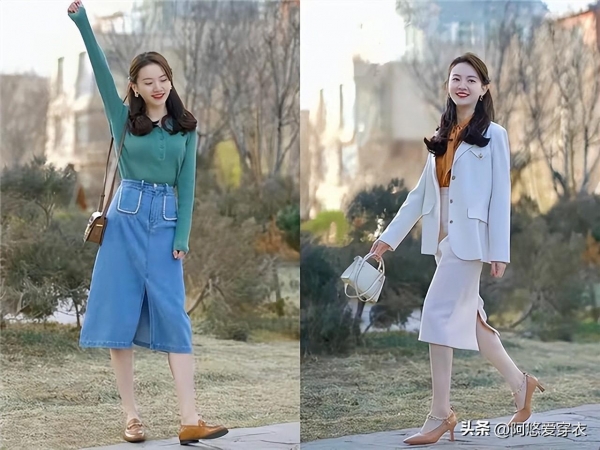 而对于想要增高显瘦显腿长以及想要凸显出性感知性的气质的女人而言,这种剪刀裙和高跟鞋的搭配组合会更值得你尝试,尤其是精致的高跟鞋,借助细细的鞋跟拉长我们的双腿,起到增高的效果,配合长款开叉裙也更显气质。