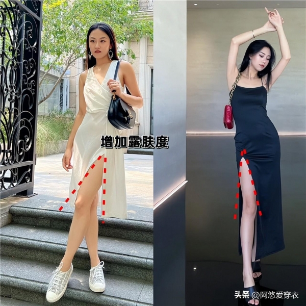 而且剪刀裙的特点在于它能够加大露肤度,不管是穿长裙还是短裙,当开叉的剪裁融入在裙子上,就能够借助这种开叉的设计去露出我们的性感腿部肌肤,而且开叉的位置越高越性感,露肤度越高也越容易凸显气质。