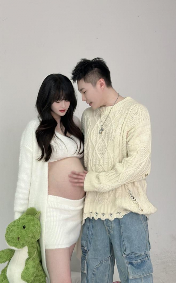 虽然很辛苦,但球球的孕期生活充实而幸福。本月上旬,夫妻俩还一起拍摄了孕肚写真。球球身穿白色短毛衣和短毛裙,外披oversize长毛衣,乌黑秀发披肩,除了肚子特别大之外,几乎没多长一丝赘肉,四肢仍旧非常纤细,相信她生完之后,身材很快就能恢复到孕前状态。