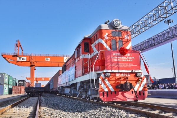 资料图:满载货物的中欧班列,已成为"一带一路"贸易畅通的重要抓手。图自澎湃影像