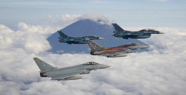 德国的台风战机和日本F-2战机合影,日本和西欧诸国都有一定的航空工业基础