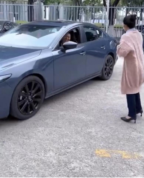 男子欣欣然同意,上车后熟练地往后倒车,男子的开车技术确实不错,很熟练地就把车倒进了停车位,停放得稳稳当当,不偏不倚。