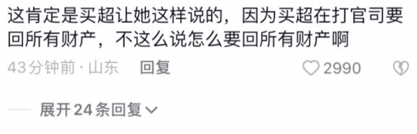 甚至有人怀疑,如今邵晴的这段澄清,都是买超让她这么说的,因为这样打离婚官司才对他有利。如果猜测为真,只能说,买超这个男人真的不简单。