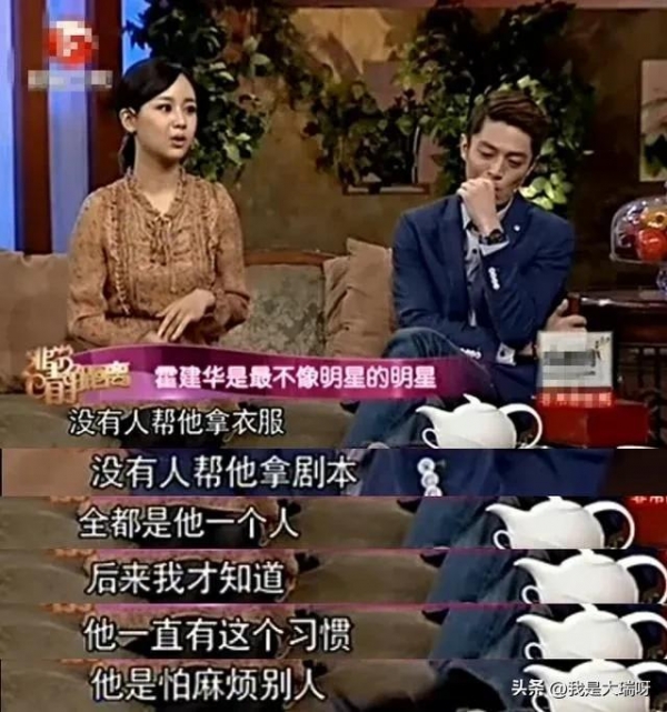 相比较女演员来说,男演员霍建华就是一个清流,杨紫都爆料他,连一个助理都没有,更不要说伺候周到了。