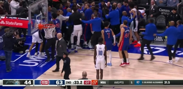 三名球员被驱逐,魔术和活塞球员爆发大规模冲突,场面一度失控!
